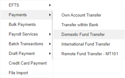 Click to initiate Domestic Fund Transfer