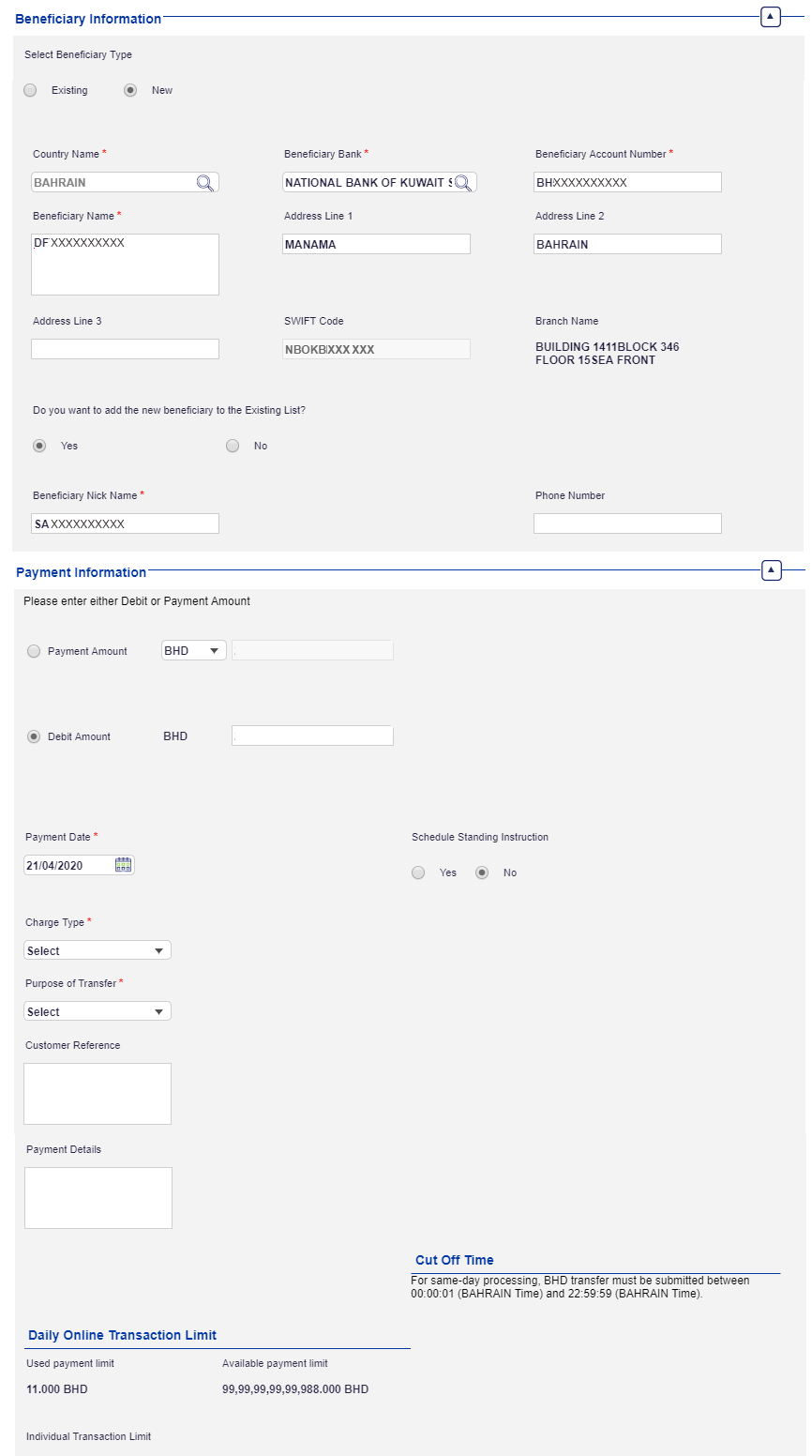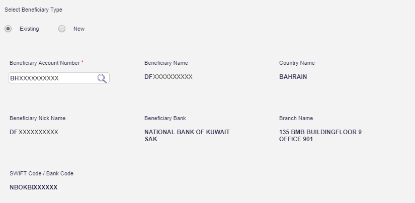 Select the Beneficiary type as Existing