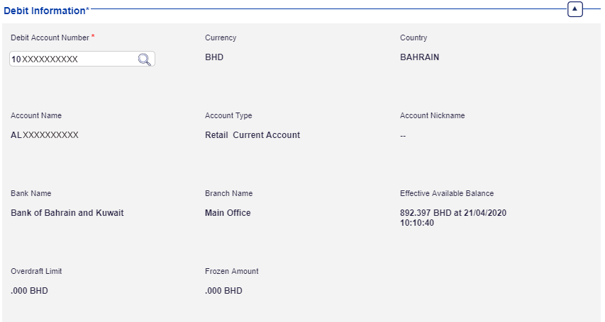 Select debit information using lookup