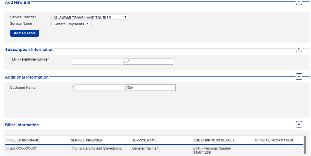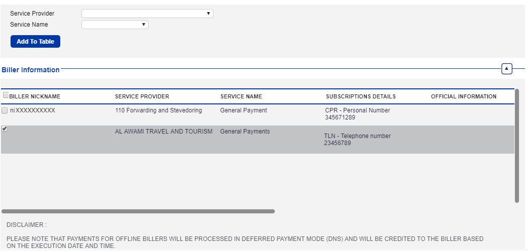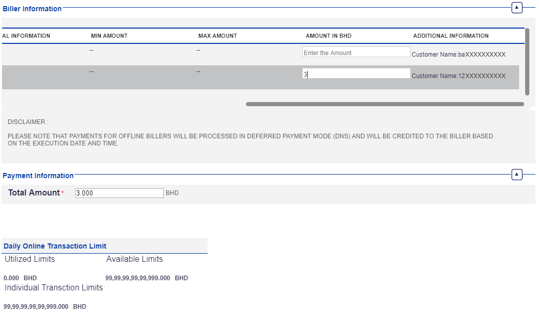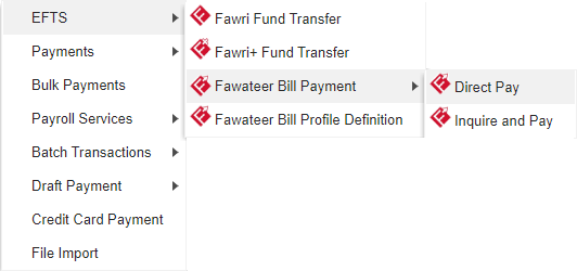Click Fawateer Bill Payment options to initiate
