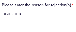 Enter the Reject Reason